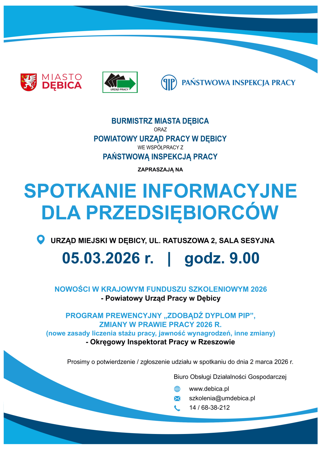 Organizatorami wydarzenia są Burmistrz Miasta Dębica, Powiatowy Urząd Pracy w Dębicy we współpracy z Państwową Inspekcją Pracy.