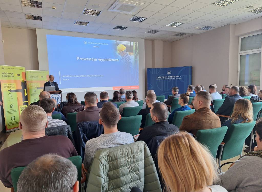 W siedzibie Okręgowego Inspektoratu Pracy w Rzeszowie 24 marca 2026 r. odbyło się szkolenie w ramach programu „Prewencja wypadkowa”. To element kampanii „Bezpieczeństwo pracy zależy od Ciebie”, prowadzonej przez Państwową Inspekcję Pracy.